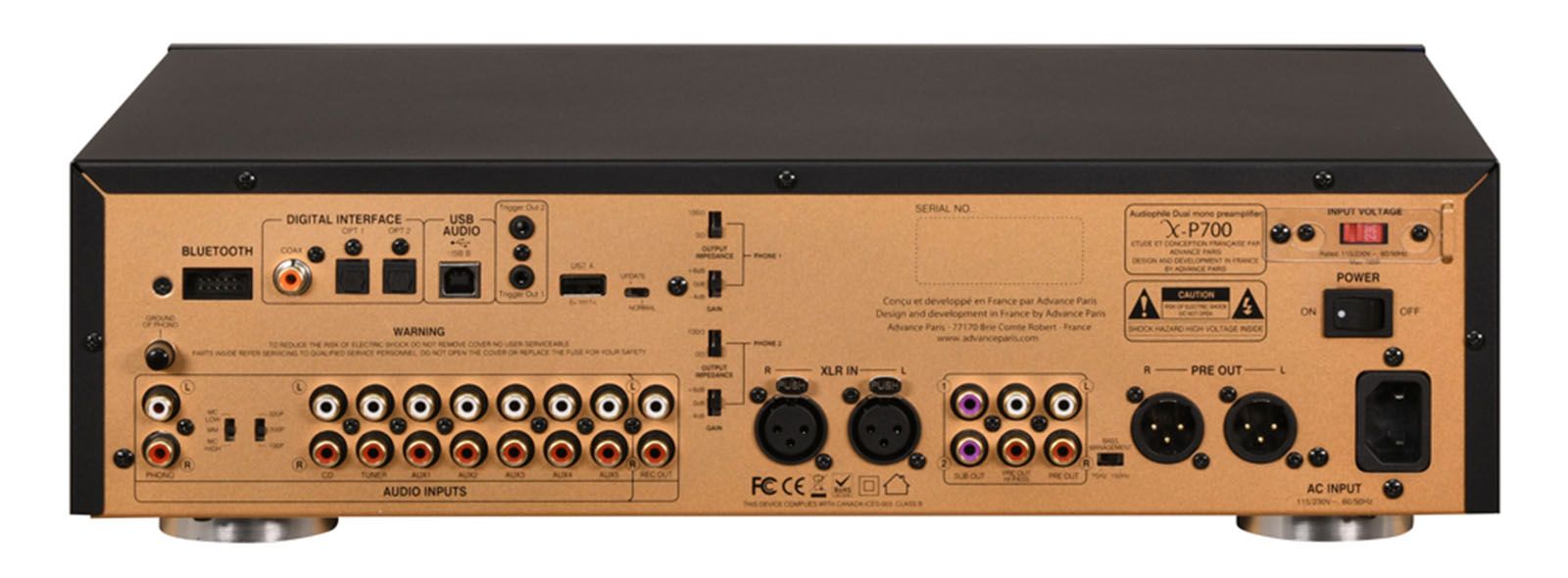 Tiene un diseño completamente Dual-Mono, y sus esquemas eléctricos están formados con componentes discretos ubicados en diferentes placas de circuito impreso (analógica, digital, fuente de alimentación y preamplificación) para evitar todo tipo de ruidos por interferencias entre las diferentes partes del preamplificador, garantizando que el Advance X-P700 es un equipo de alta calidad y rendimiento.
