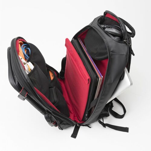 Riot Dj Backpack de Magma dispone de un compartimento para laptop de 15″, vinilos de código de tiempo, controladores de tamaño pequeño, tarjeta de sonido y otros accesorios